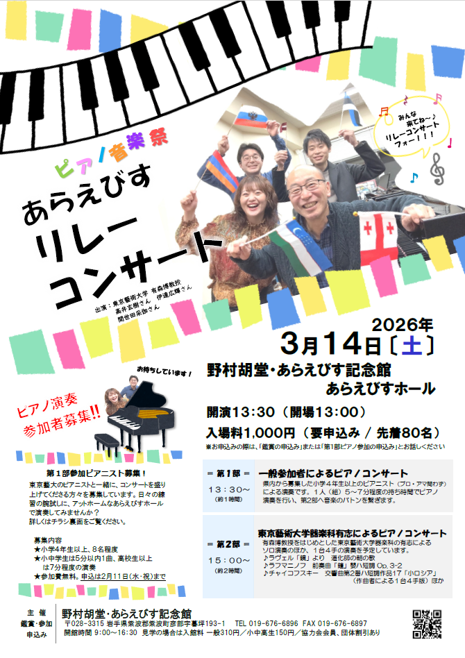 「あらえびすリレーコンサート」は、県内でピアノを勉強している方や