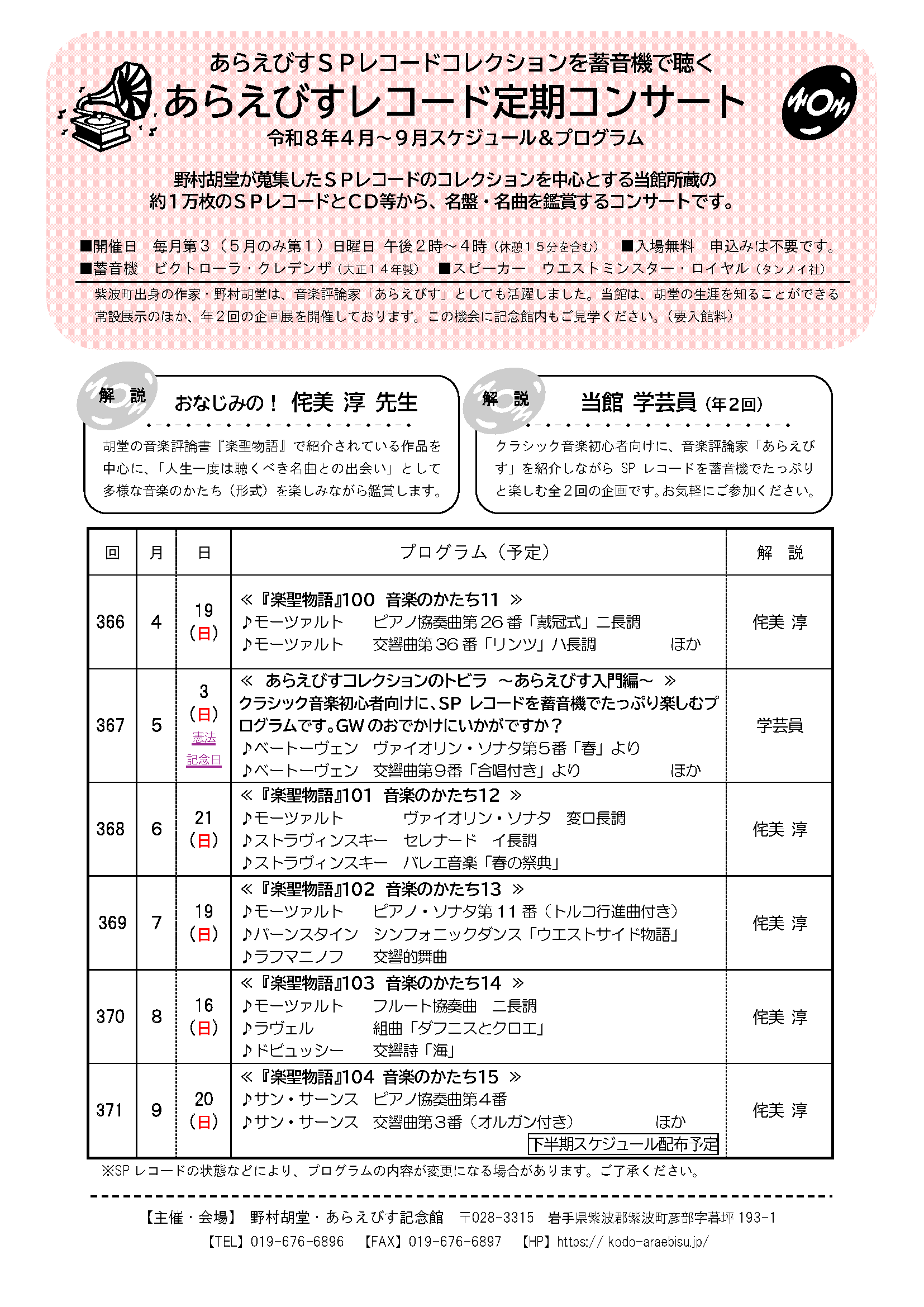 あらえびすレコード定期コンサート【4~9月スケジュール】