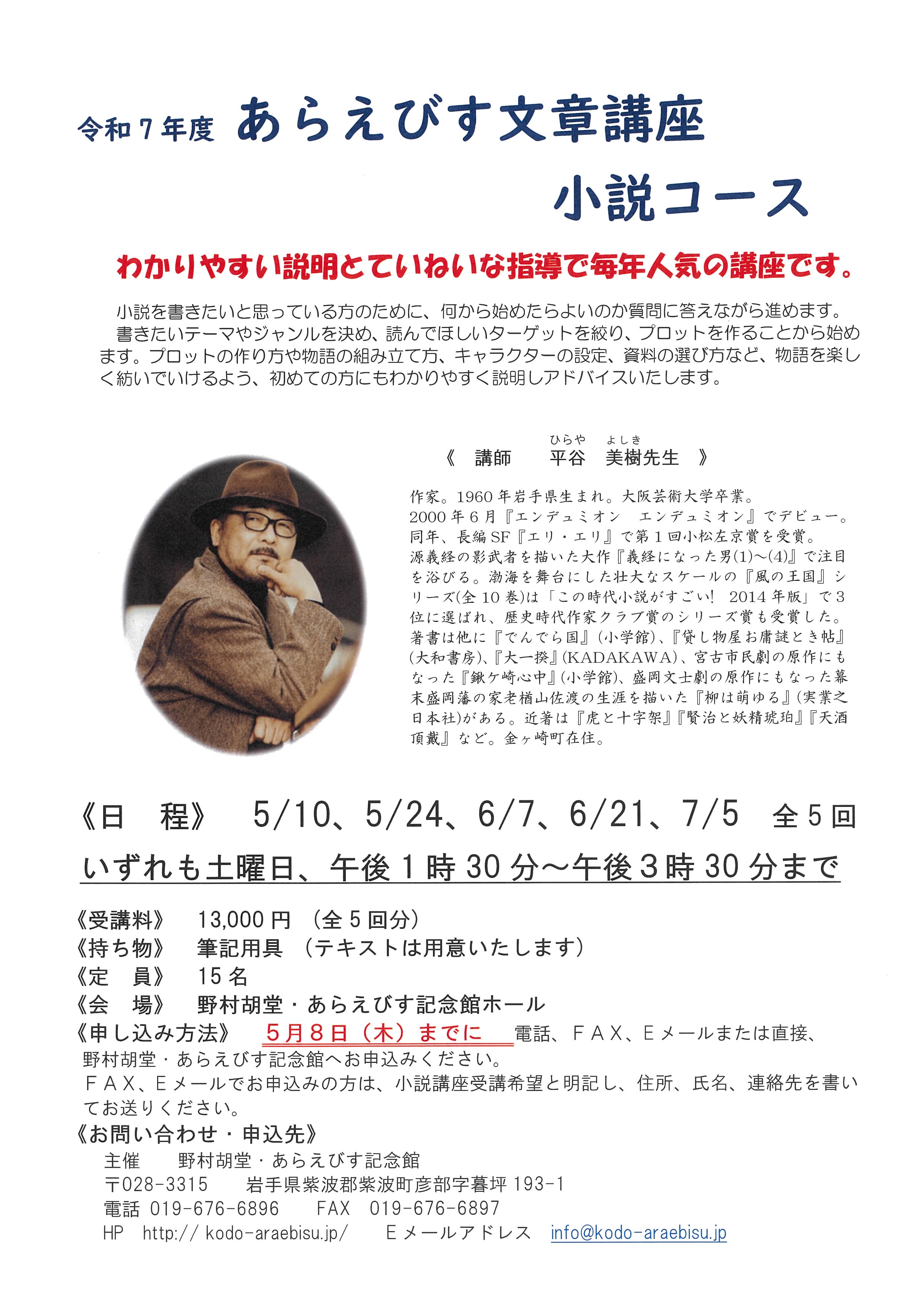 ◆日 程 5/23、6/6、6/20、7/4、7/18(全5回 いずれも土曜日)